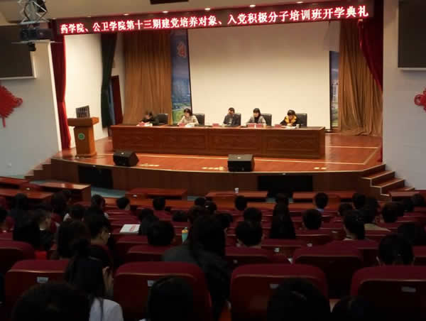 3月28日下午,藥學(xué)院、公共衛(wèi)生學(xué)院第十三期建黨培養(yǎng)對(duì)象、入黨積極分子培訓(xùn)班開學(xué)典禮在校圖書館第一學(xué)術(shù)報(bào)告廳舉行。校黨委組織部部長(zhǎng)、黨校常務(wù)副校長(zhǎng)李陽(yáng)新出席并講話,藥學(xué)院黨委書記袁方為開班式作動(dòng)員。大會(huì)由公共衛(wèi)生學(xué)院黨委書記宋玉梅主持。