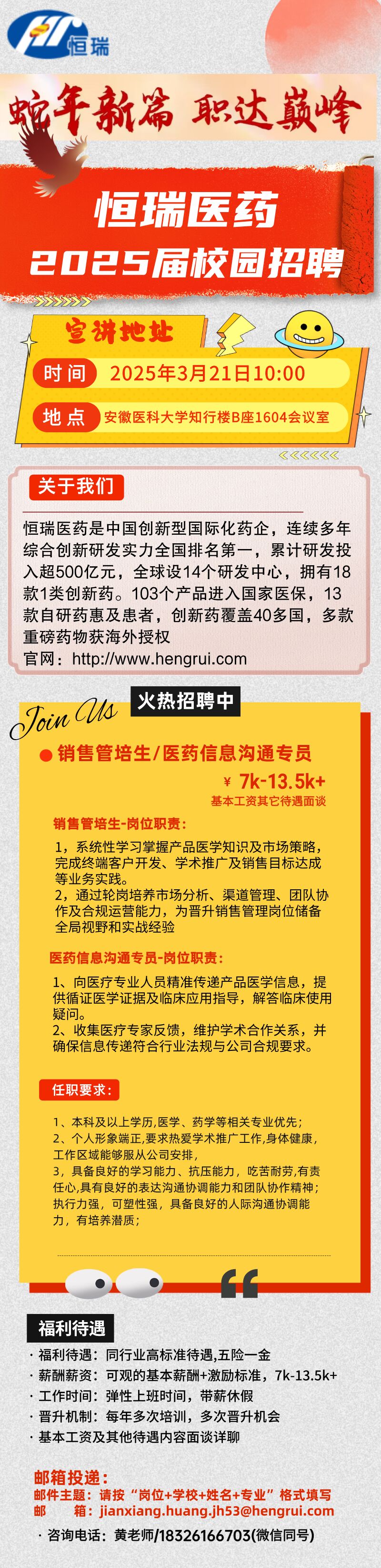 就業(yè)信息|恒瑞醫(yī)藥2025屆校園招聘宣講會(huì)