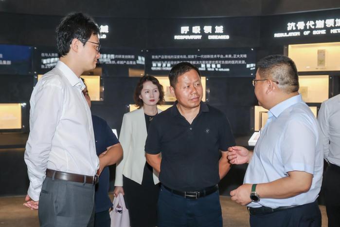 訪問期間,駱廣東一行參觀了正大天晴數(shù)智體驗中心,詳細了解企業(yè)創(chuàng)新發(fā)展歷程、醫(yī)藥研發(fā)成果和智能制造體系。座談會上,駱廣東介紹了學(xué)院的發(fā)展近況。他表示,學(xué)院始終堅持開放辦學(xué),積極推動產(chǎn)學(xué)研用深度融合,希望以此次交流為契機,進一步搭建校企聯(lián)動平臺,共同探索黨建共創(chuàng)、人才共育、科研共享的新機制、新模式,為健康中國建設(shè)和區(qū)域生物醫(yī)藥產(chǎn)業(yè)發(fā)展貢獻力量。