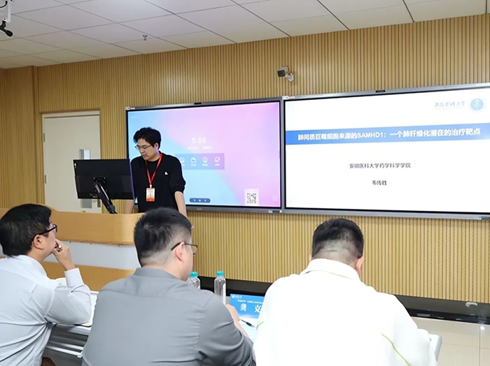 在主題為“基礎(chǔ)研究與臨床診療協(xié)同創(chuàng)新”的分論壇中,我院2022級藥理學(xué)博士研究生韋傳勝,以優(yōu)秀的表現(xiàn)獲得口頭匯報(bào)二等獎(jiǎng)。在沈玉先教授的悉心指導(dǎo)下,韋傳勝博士以《肺間質(zhì)巨噬細(xì)胞來源的SAMHD1:一個(gè)肺纖維化潛在的治療靶點(diǎn)》為題,結(jié)合國內(nèi)外研究進(jìn)展,從SAMHD1分子的發(fā)掘到干預(yù)機(jī)制,詳細(xì)地闡述了SAMHD1在肺纖維化相關(guān)巨噬細(xì)胞中的異質(zhì)性,強(qiáng)調(diào)肺間質(zhì)巨噬細(xì)胞來源的SAMHD1是治療肺纖維化的有效靶點(diǎn),為治療肺纖維化提供可靠的理論依據(jù)。