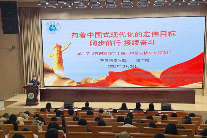 會(huì)上,駱廣東結(jié)合學(xué)習(xí)宣傳貫徹黨的二十屆四中全會(huì)精神,鼓勵(lì)2022級(jí)本科生珍惜實(shí)習(xí)生涯,強(qiáng)化創(chuàng)新思維和知行合一,主動(dòng)投身生物醫(yī)藥新賽道,參與研發(fā)生產(chǎn)更多適合中國(guó)人生命基因傳承和身體素質(zhì)特點(diǎn)的“中國(guó)藥”,努力成為醫(yī)藥領(lǐng)域新質(zhì)生產(chǎn)力的創(chuàng)造者。他寄語同學(xué)們,積極踐行“修身至善、博學(xué)悟真、中西兼容、知行并進(jìn)”的育人理念,走上從“小藥師”到“好藥師”再到“藥大師”的職業(yè)成長(zhǎng)之路,將個(gè)人理想融入健康中國(guó)建設(shè)。